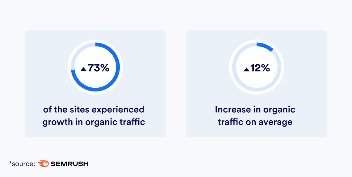 A recent study by SEMRUSH analyzed 847 websites that implemented accessibility remediation solutions and tracked their traffic before and after implementation. The results revealed that over 73% of the sites experienced growth in organic traffic, at an average increase of 12%. When it comes to specific solutions, the results are not all the same. According to Accessibility Checker, websites experienced a 113% increase in organic traffic after installing accessWidget.
